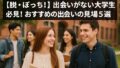 幅広い出会いの場を知りたい方は『本当に出会いがない人必見!女性と出会える場所16選【完全マップ】』で解説しています。ぜひ参考にしてみてください。